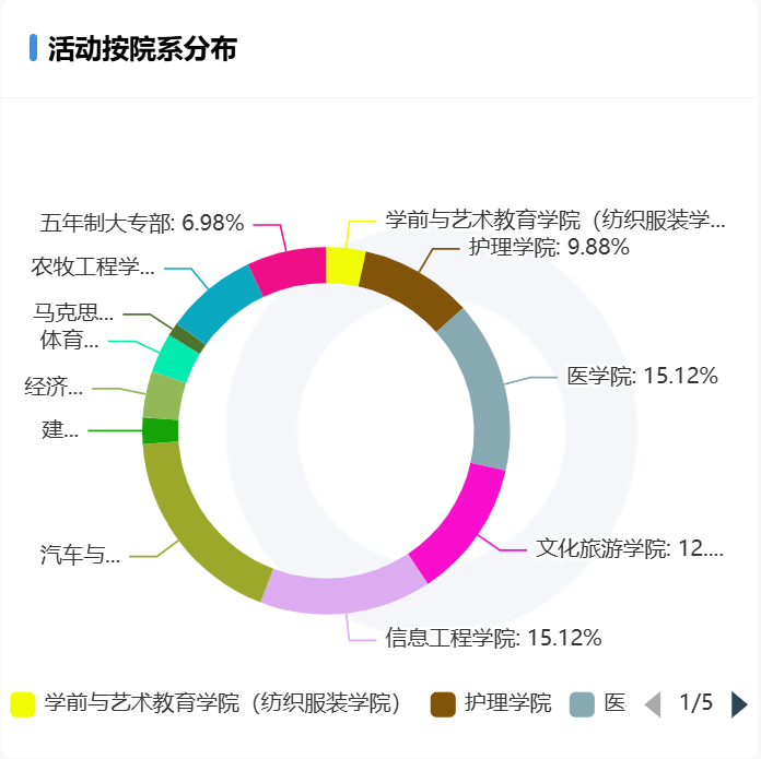 各院部发布的活动数量占比,前三名分别是汽车与机电工程学院、医学院、谈球吧体育官网入口。