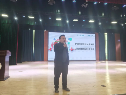 我院为普及急救知识与技能,增强同学们的自救互救意识,充分有效抓住应急救助的黄金救援时间,我院于3月12日,邀请护理学院为同学们科普急救知识,会议开始由体育学院院长徐长宇与范伟杰书记为会议拉开序幕。