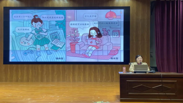 讲座上,王亚琳老师首先介绍了爱情的内涵与本质、男女在恋爱中的心理差异、恋爱所经过的四个阶段、产生感情的心理因素等,来帮助同学们客观理性的认识自己、认识恋爱,同时穿插多个真实案例,结合分析了当代大学生的恋爱现状和目前所存在的常见问题,又从心理学的角度向同学们讲解了在恋爱中要如何自我调适的基本原则和方法,为大家提供了应对心理情感问题正确的解决方法。其次,王老师通过“爱的能力组成”六点的讲解及多个视频片段、热播影视剧作品的举例,向同学们提出,爱是一种能力,我们要学会爱人先爱己,才能在爱情中更好的表达及接受爱、解决爱情中的冲突、保持爱情的长久、面对失恋的能力。恋爱不是人生的必修项,最后,也希望同学们都能找到属于自己的方向,发掘自身的意义,激发自己的潜能,找到属于自己未来幸福的方向!